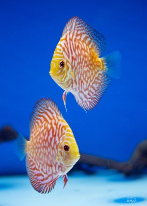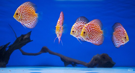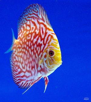 Potrava: živé, mrazené, hovädzie srdce, vločky, granule a iné špeciálne krmivá pre discusy