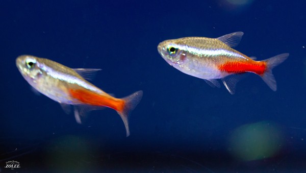 Charakteristika: Čulá, mierumilovná, skupinová rybka. Miluje husto osadené akváriá, ktoré nesmú byť príliš osvetlené. Na bokoch má po celej dĺžke tela výrazný modrý pruh, pod ním v zadnej časti tela jasne červené sfarbenie. U samičiek je telo oblejšie. Začínajúci akvaristi si ju môžu zameniť s neonkou červenou. Tá má však červené celé brucho, tetra má iba červený pruh.