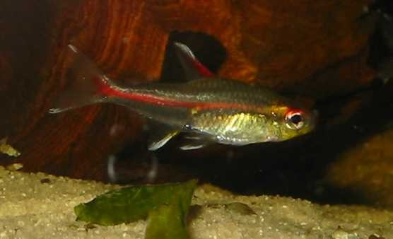 Charakteristika: Telo má priesvitne striebristé, na bokoch svietivo oranžový pruh. Chovajú sa v skupinách s menšími druhmi rybiek. Jej farby najviac vyniknú nad tmavým dnom, pri slabšom osvetlení, rozptýlenom plávajúcimi rastlinami. Akvárium by malo byť s dostatkom rastlín a miestom na plávanie. Je dôležité akvárium udržiavať v čistote a pravidelne vymieňať časť vody, dlhodobá koncentrácia dusíkatých látok im nerobí dobre. Vodu je vhodné filtrovať cez rašelinu.
